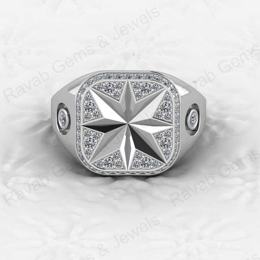 Best Selling Men's 925 Sterling Silver Signet Ring Carved North Star With CZ Diamond Fine Personalized Wedding Jewelry