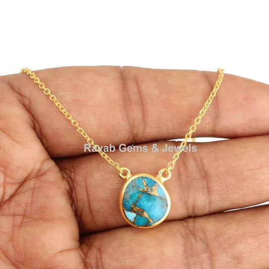 Best Selling Mohave Blue Copper Turquoise Stone Gold Plated Sterling Silver Minimalist Layering Dainty Chain Necklace for Her