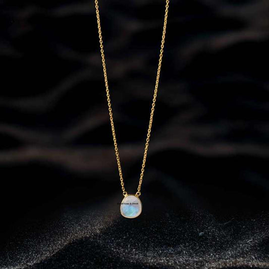 Best Selling Genuine 925 Silver Rainbow Moonstone Healing Crystal Vermeil Eternity Band Dainty Chain Pendant Necklace for Her