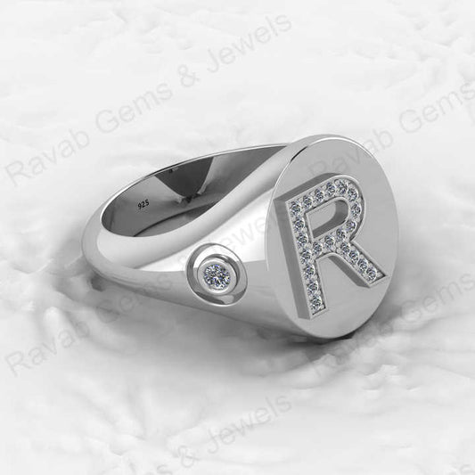Best Selling Genuine 925 Sterling Silver Diamond Zircon Initial Letter Personalized Custom Solomon Signet Oval Men Ring Jewelry