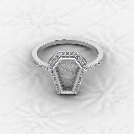 Custom Design 925 Sterling Silver Coffin Shape CZ Semi Mount Blank Setting Ring for Gemstone Findings Without Stone Jewelry