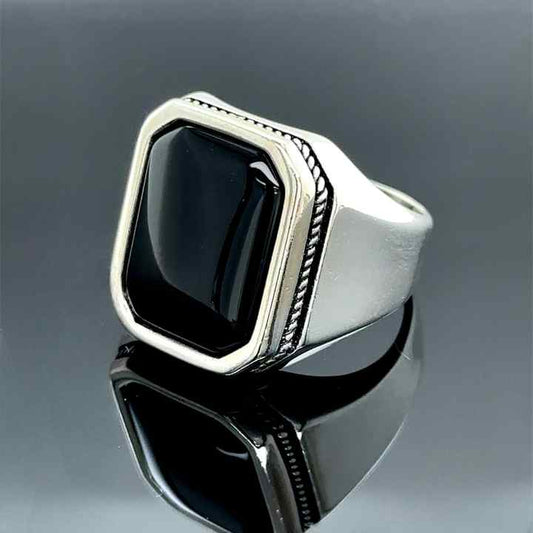 Classic Natural Black Onyx Cabochon Octa Cushion 12x16mm Bezel Setting Solid 925 Sterling Silver Mens Fine Signet Ottoman Ring