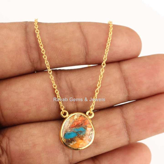 Best Selling Uneven Spiny Oyster Copper Turquoise 18k Gold Filled 18 Inch Chain Minimalist Layering Pendant Necklace for Women