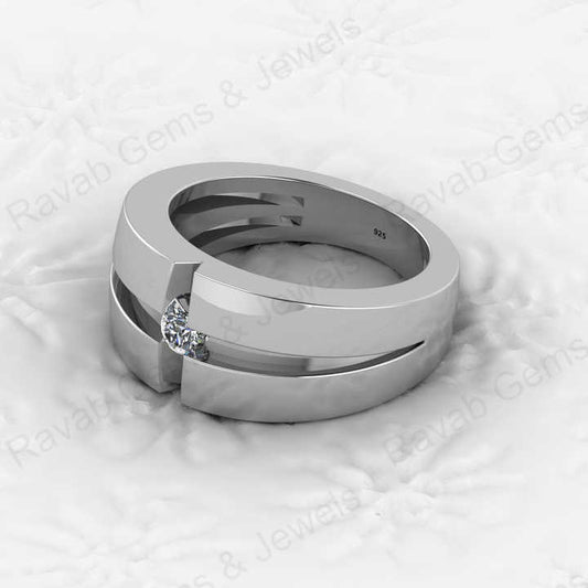 Christmas Sale Solid 925 Sterling Silver CZ Moissanite Round Brilliant Cut Solitaire Wedding Band Fine Gemstone Jewelry