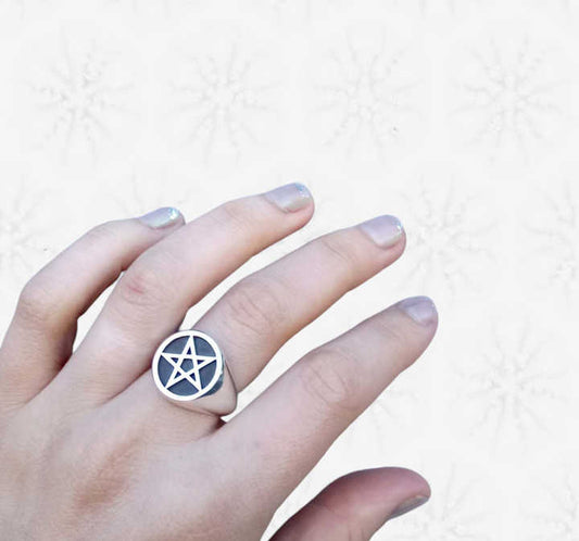 Christmas Sale Solid 925 Sterling Silver Pentacle Star Signet Engraving Signet Ring for Women & Men Fine Handmade Unique Gifts