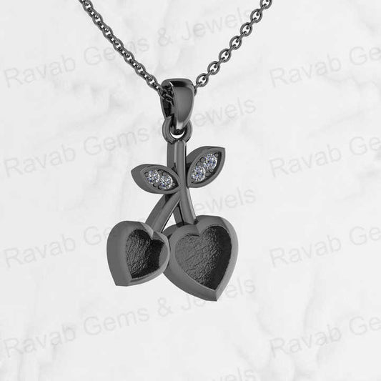 Genuine 925 Silver 15X25mm Couple Cherry Love Heart Semi Mount Empty Charm Pendant Setting for Resin Ashes Work Necklace Jewelry