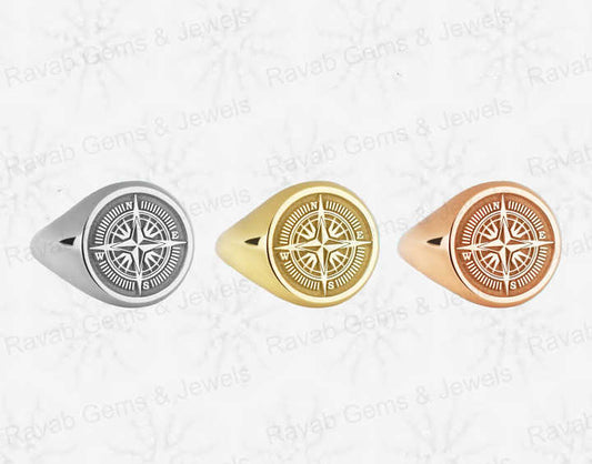 Christmas Sale Solid 925 Sterling Silver Retro Compass Engraving Signet Ring for Women & Men Fine Handmade Unique Fine Gifts