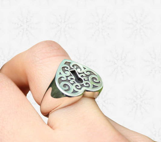 Christmas Sale Solid 925 Sterling Silver Padlock Clasp Heart Engraving Signet Ring for Women & Men Fine Handmade Unique Gifts