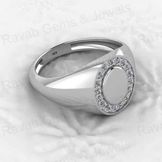Genuine 18k Gold Plated 925 Sterling Solid Silver 8x12mm Oval Shape Pave CZ Diamond Signet Ring for Men Personalized Jewelry