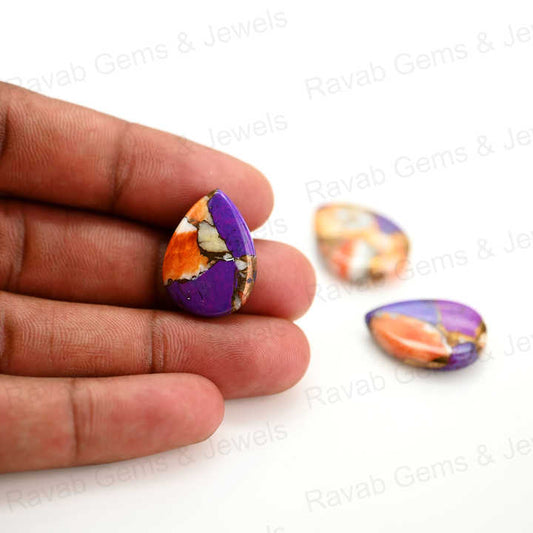 Best Selling 16x22mm Natural Purple Spiny Oyster Pear Shape Cabochon Gemstone Hand Polish Loose Stone for Making Fine Jewelry