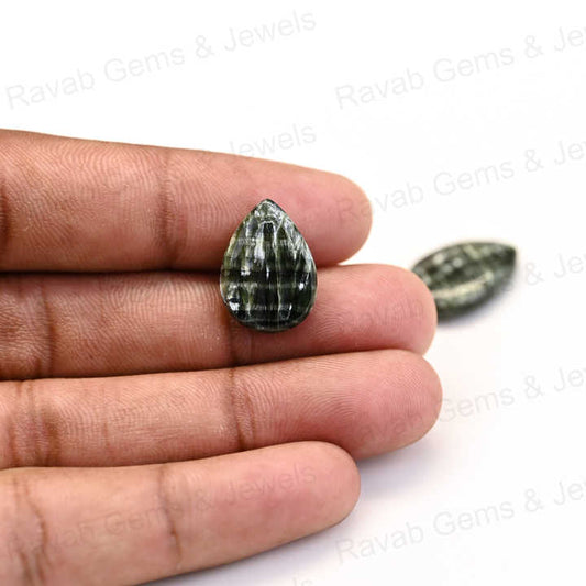 Best Quality 16x22mm Natural Seraphinite Pear Shape Cabochon Calibrated Gemstone Hand Polish Loose Stone for Making Gold Jewelry