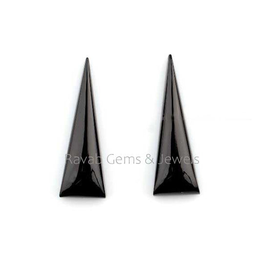 10x28mm Natural Black Onyx Long Triangle Flat Back Gemstone, Loose Beads Smooth Calibrated Cabochons Stone For Matching Earring Pair 2 Pcs
