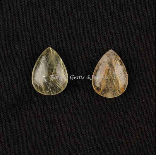 Beautiful Golden Rutile Pear Shape 12x16mm Smooth Briolette Gemstone For Jewelry, Calibrated Loose Beads Stone For Jewelry Making 2 Pcs Set