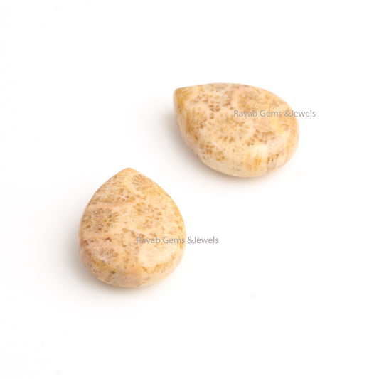 12x16mm Amazing Fossil Coral Pear Shape Smooth Briolette Gemstone, Calibrated Loose Beads Semi Precious Stone For Earrings 2 Pcs All Size