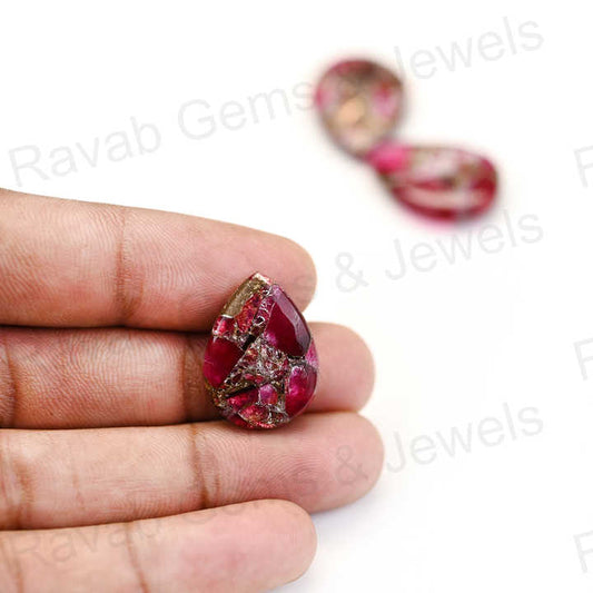 New Arrival Quality 16X22mm Mohave Pink Ruby Copper Pear Shaped Hand Polish Gemstone for Making 14k Gold Handmade Fine Jewelry