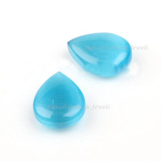Sky Blue Cats Eye Pear Shape 12x16mm Smooth Briolette Gemstone For Jewelry Making, Calibrated Loose Beads Stone For Bridemaid 2 Pcs Set