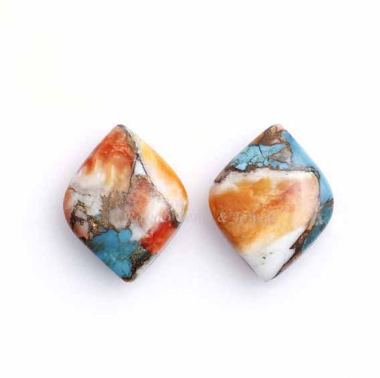 Spiny Oyster Copper Turquoise 14x18mm Gemstone, Smooth Briolette Calibrated Stones, Marquise Shape Stone For Jewelry Earring Making- 2 Pcs