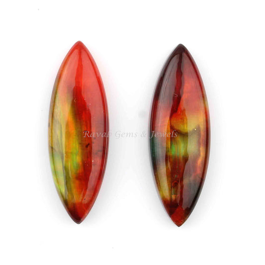 Orange Ammolite Quartz Marquise 8x25mm Smooth Cabochons Gemstone, Orange Ammolite Quartz gemstone pendant, earring making beads 2 pcs set