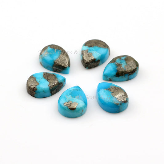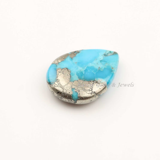 Pyrite Turquoise Pear Shape Smooth Briolette Gemstone, Loose Beads Semi-Precious Cabochons Jewelry Making Stone 10x14mm- 2 Pc