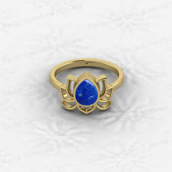 Best Selling 6x8mm Natural Lapis Lazuli Gemstone 925 Silver Vermeil Eternity Bezel Crown Design Women's Vintage Wedding Ring