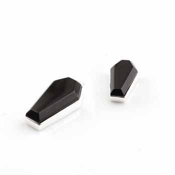 Wholesale 925 Sterling Silver Coffin Charm Pendant Bracelet Necklace 10x17mm Genuine Black Onyx Stone Bezel Setting