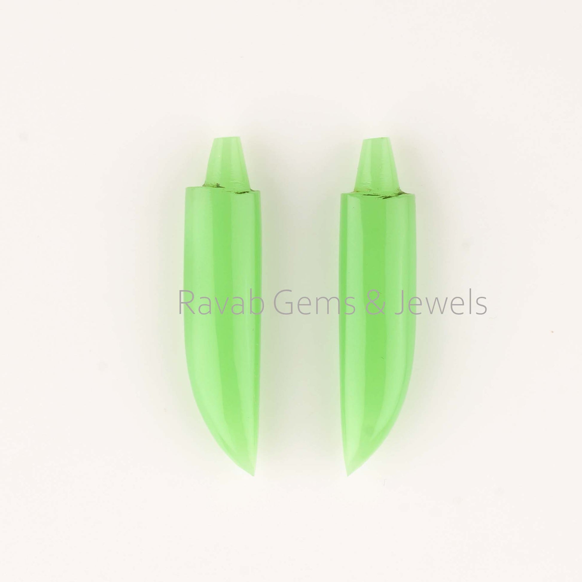 7x30mm Chrysoprase Chalcedony Gemstone New Sword Shape Gemstone, Smooth Briolette Stone For Jewelry Earring Pendant Making - 2 Pcs Set