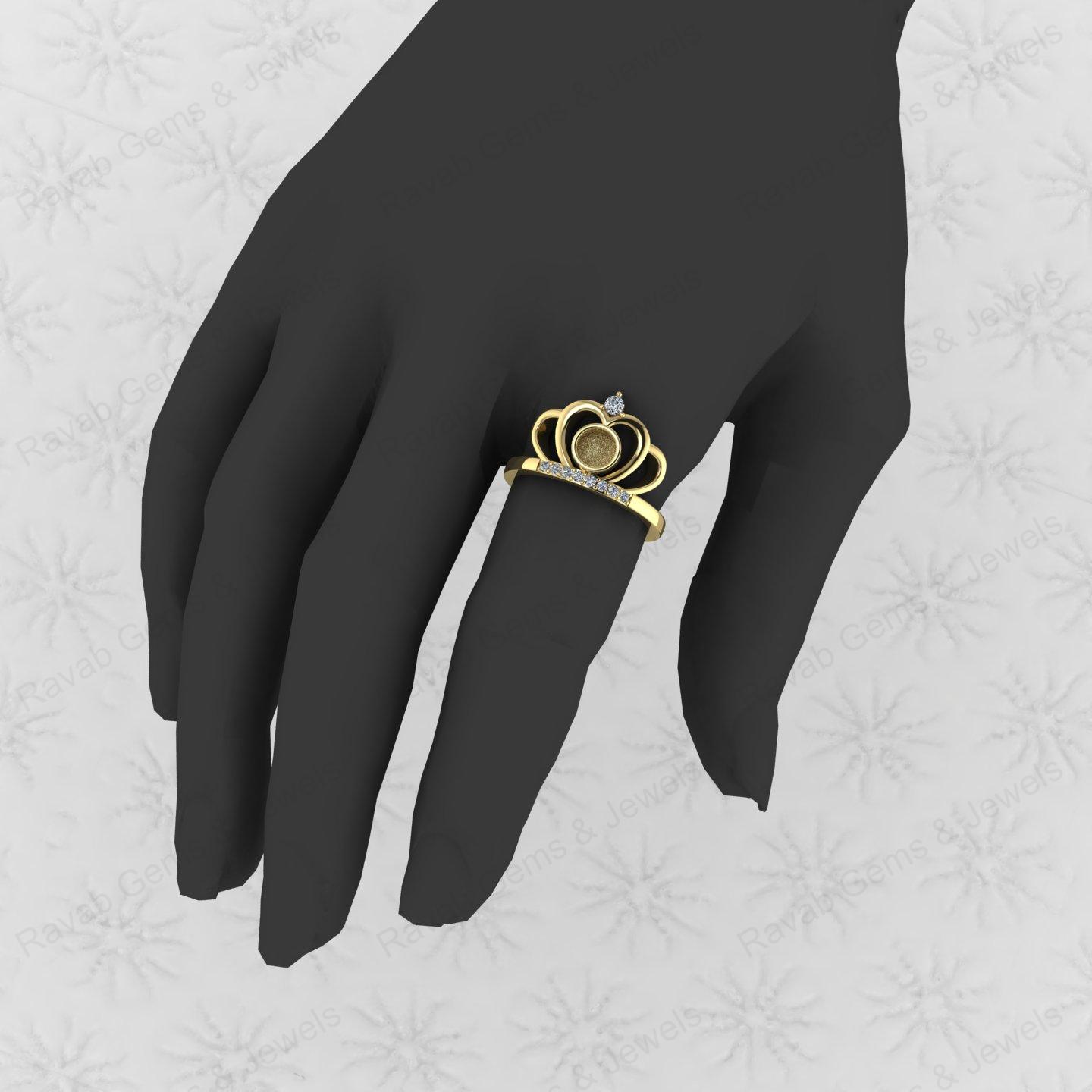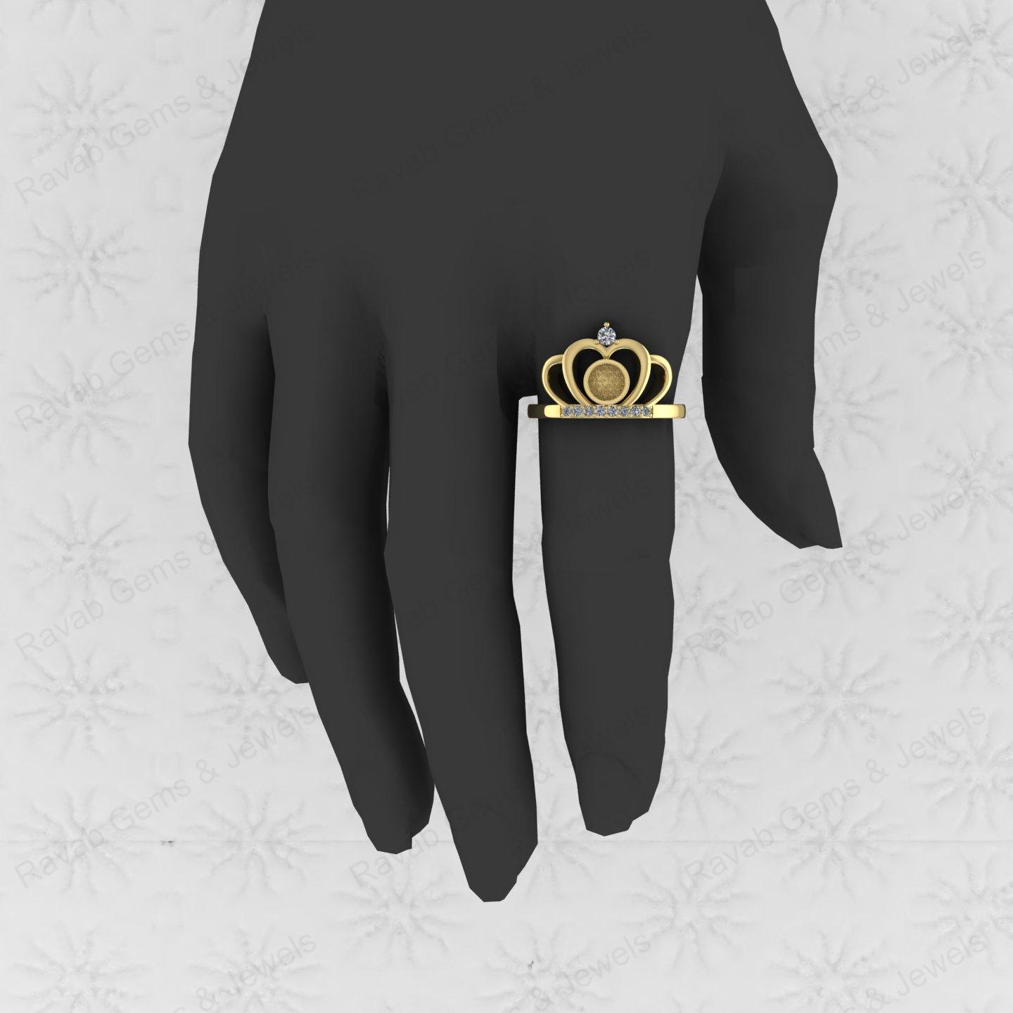High Quality 925 Silver Princess Crown 6mm Round CZ Semi Mount Blank Bezel Breastmilk Keepsake Resin Ashes Ring Setting Jewelry