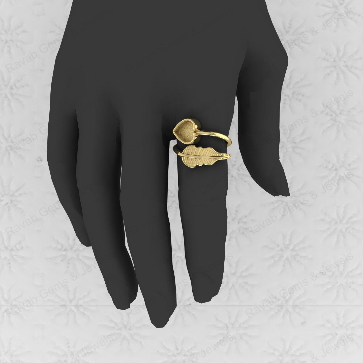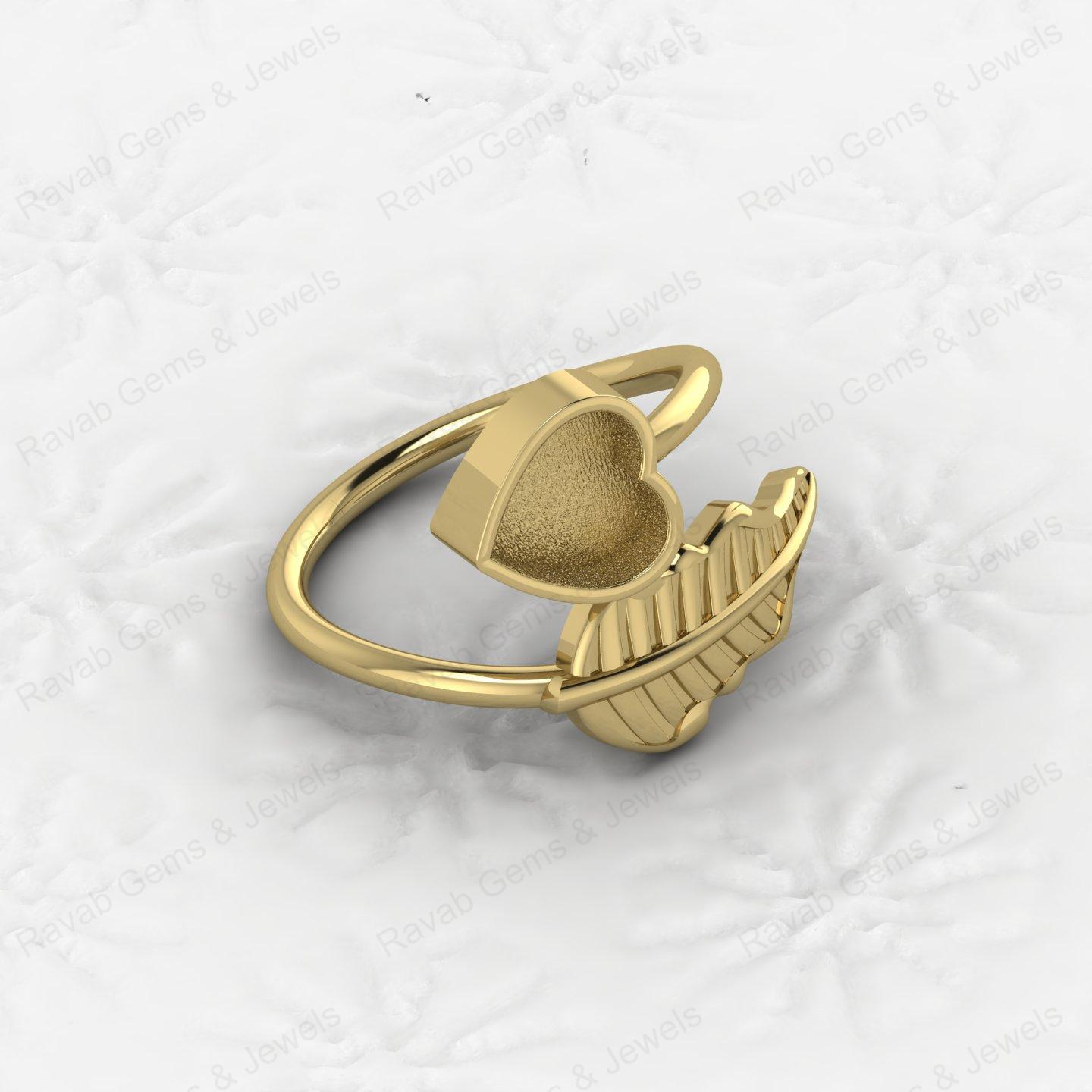 Genuine 925 Silver Leaf & Heart Pear 6x8mm Semi Mount Blank Setting Ring for Gemstone Ashes & Resin Jewelry Findings & Jewelry
