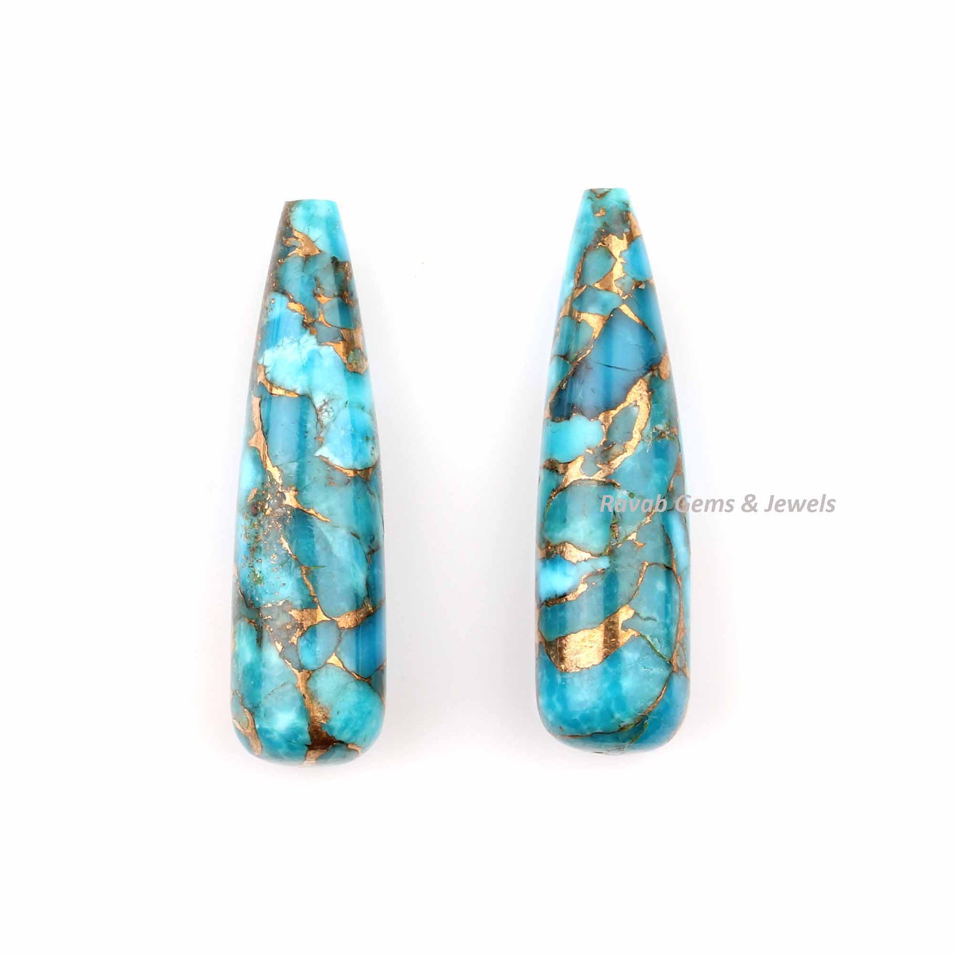 9x30mm Blue Copper Turquoise Drop Smooth Briolette Gemstone, Calibrated Loose Semi Precious Stone For Jewelry Earring Making Elegant 2 Pcs