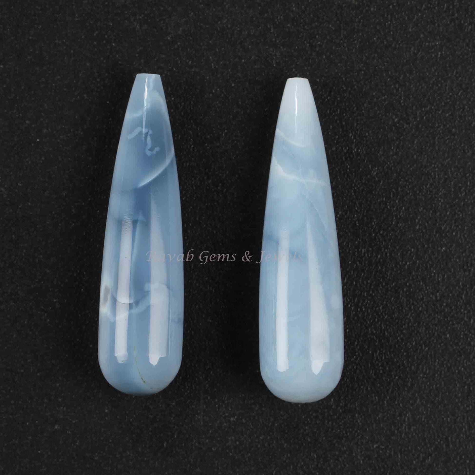 Natural Blue Opal 9x30mm Teardrop Smooth Gemstone, Loose Beads Stone For Earring Making, Pair Stone, Calibrated Stone For Love Gif- 2 Pc set