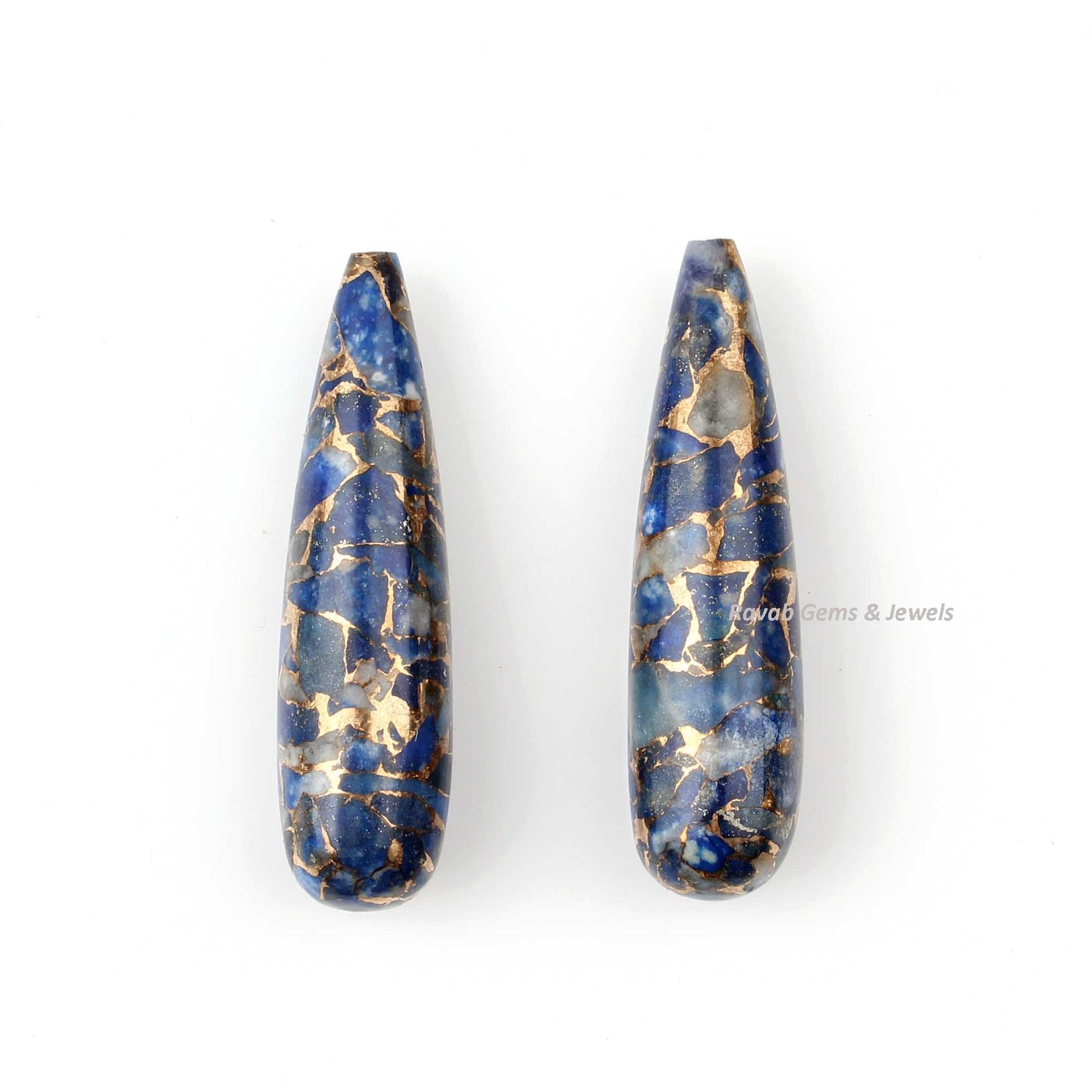 9x30mm Lapis Lazuli Copper Gemstone Smooth Drop | Briolette Teardrop Stones For Jewelry Earring Making- Long Teardrop 2 Pcs Set Wholesale