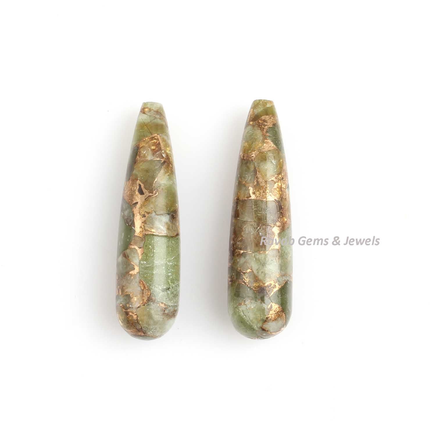 9x30mm Mix Green Peridot Copper Mohave Drop, Smooth Gemstone Drops Briolette, Mohave Gemstone Semi-precious Stone Jewelry Making- 2 pcs