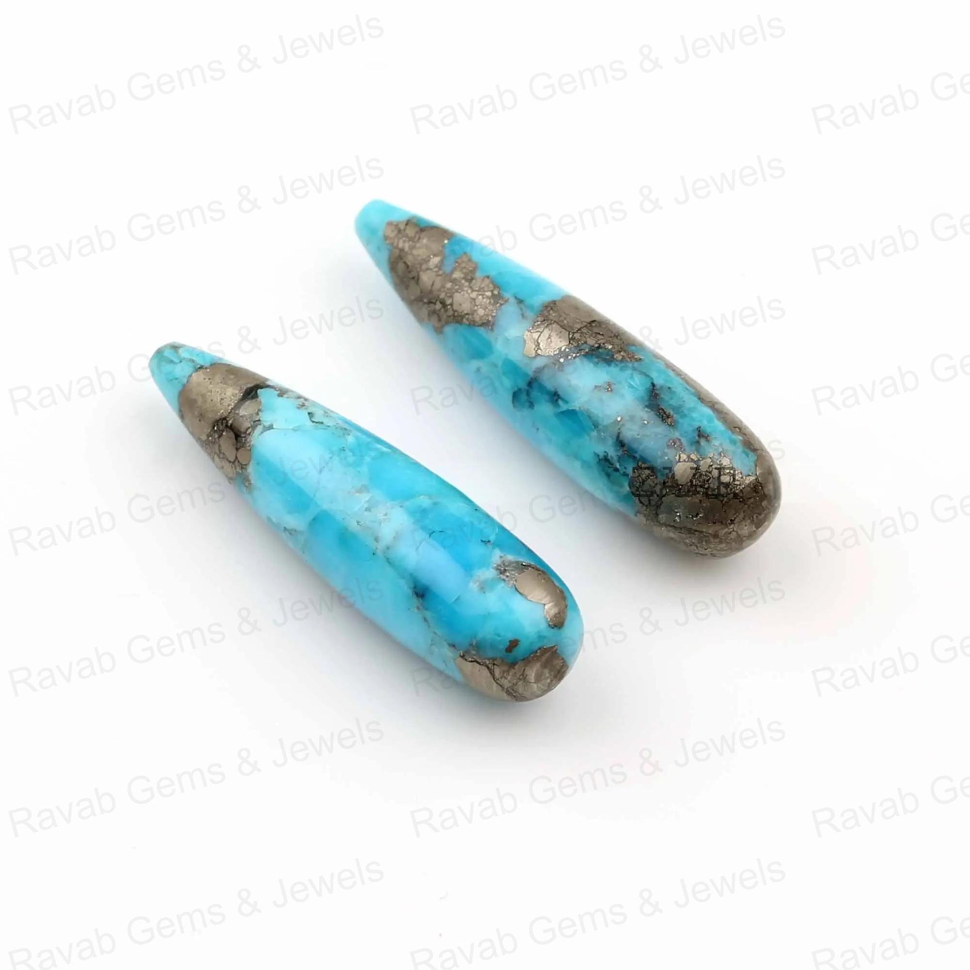 9x30mm Pink Blue Copper Turquoise Teardrop Smooth Briolette Gemstone, Loose Beads For Earring Making Calibrated Stones 2 Pcs Set For Gifted