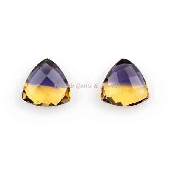 Ametrine Quartz Trillion Shape 12mm Faceted Briolette Gemstone, Loose Beads Calibrated Stones For jewelry Earring Making 2 Pcs Pair Set
