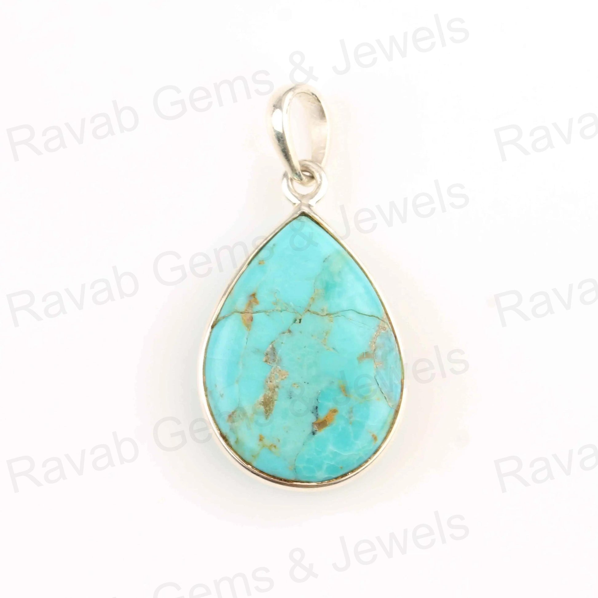 Arizona Turquoise Pear Gemstone Pendant, 925 Sterling Silver Charm Pendant, Smooth Briolette Handmade Stone Jewelry Pendant 1 Pcs Gifted