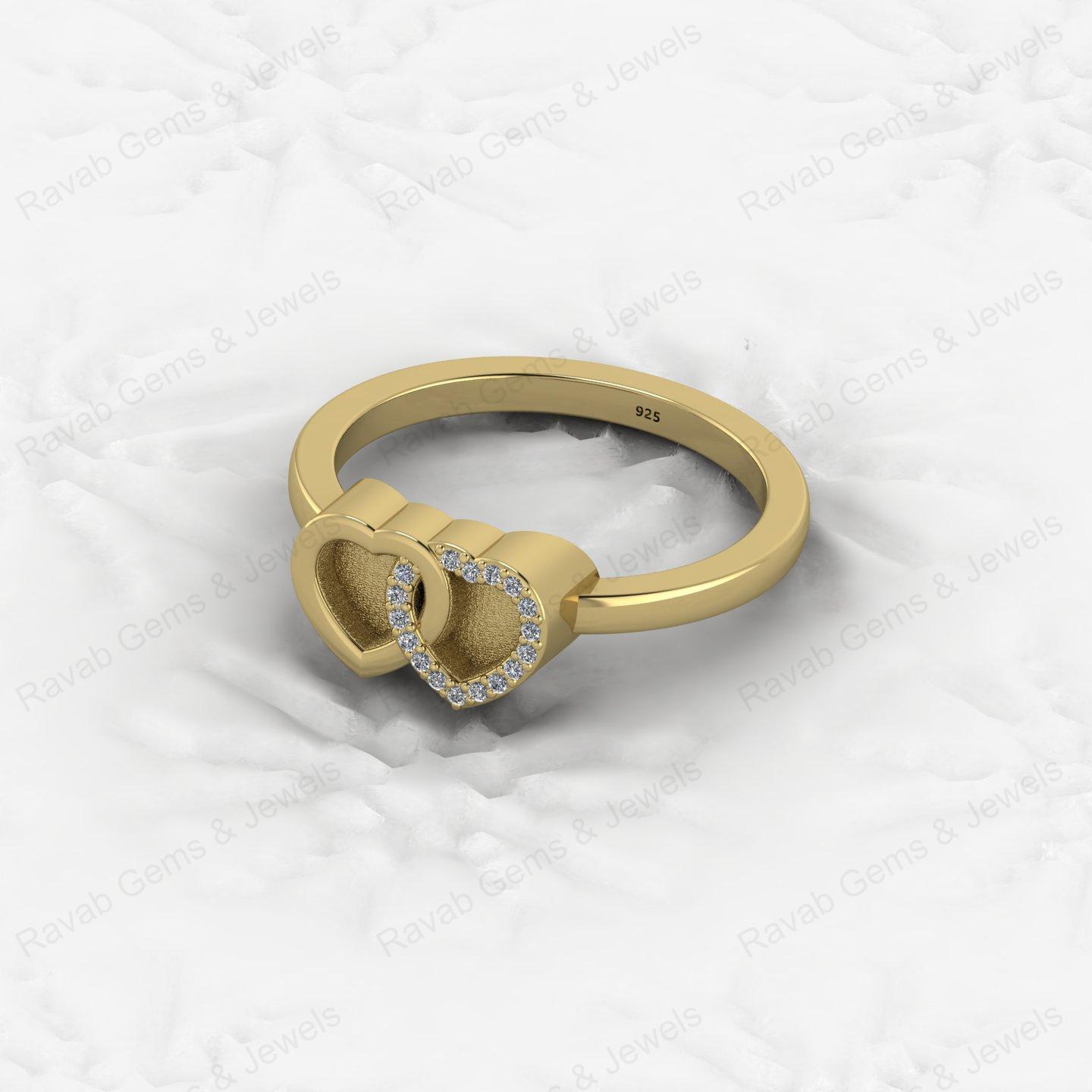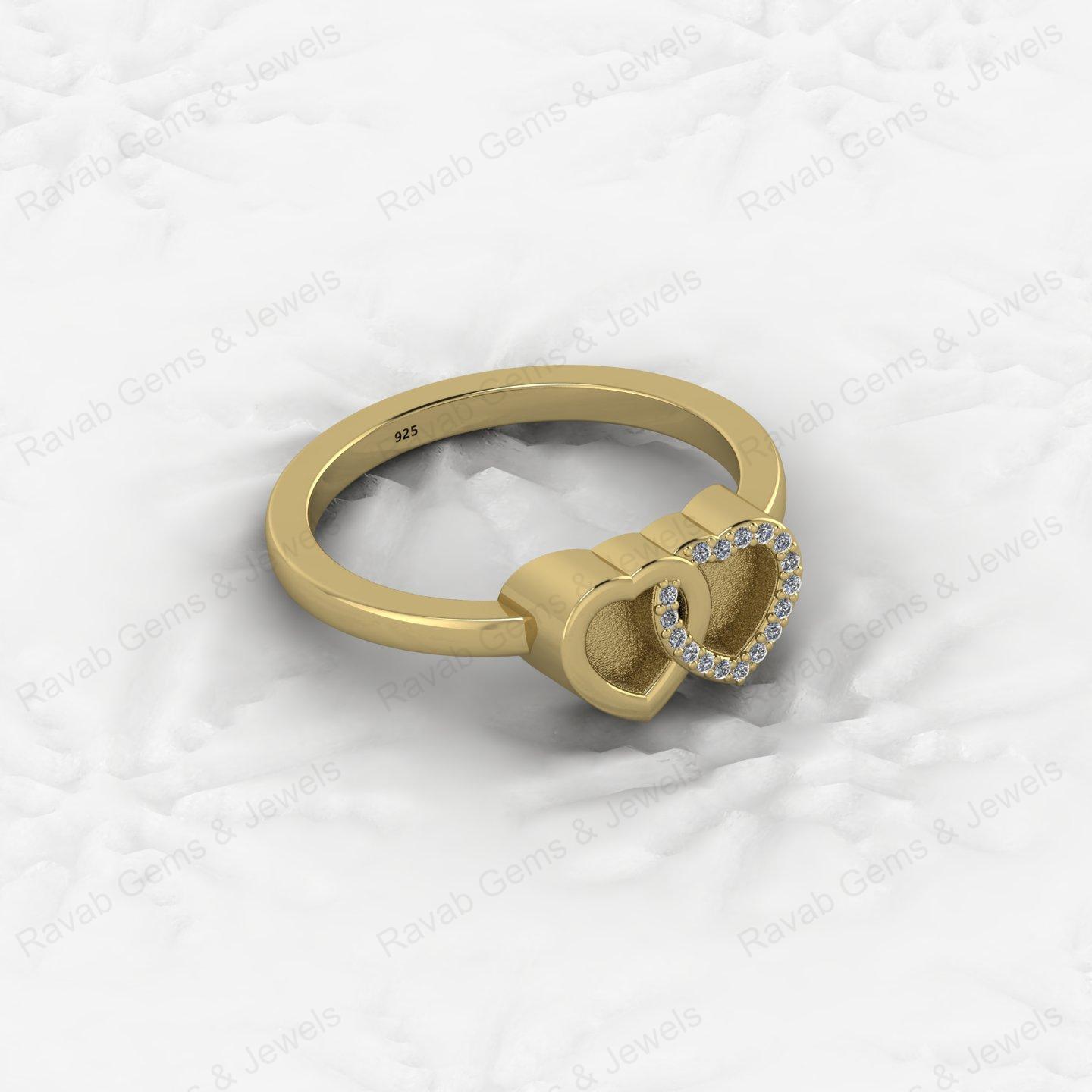 Best Quality 925 Silver Double Heart With CZ 1mm Semi Mount Blank Setting Eternity Ring for Breastmilk Keepsake Fine Jewelry