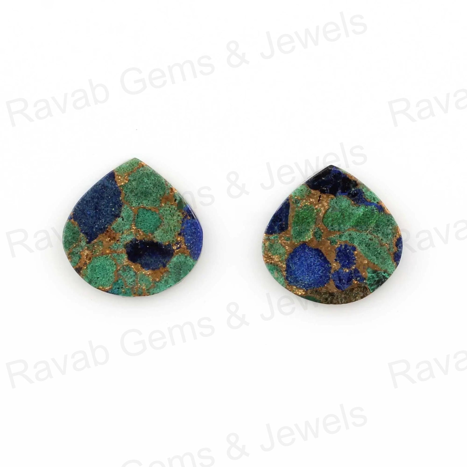 Azurite Copper Heart Shape Both Side Flat Gemstone For Pendant, Loose Beads Calibrated Semi Precious Stone 2 Pcs Set All Sizes Available