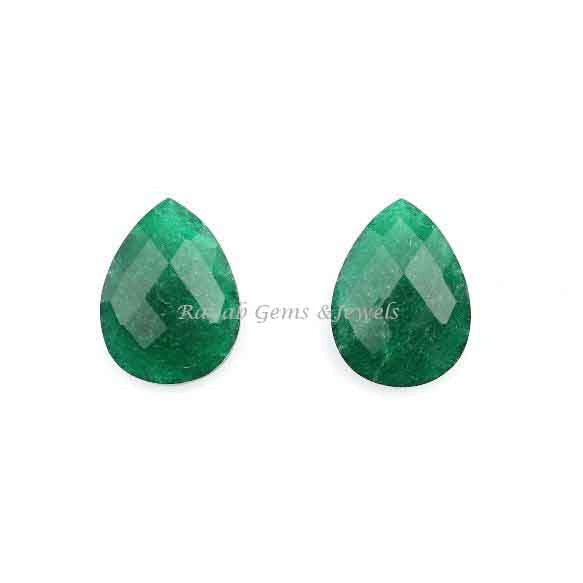 Beautiful Dyed Emerald Pear Shape 12x16mm Faceted Briolette Gemstone, Amazing Quality Matching Pair Calibrated Stone For Jewelry 2 Pcs Set
