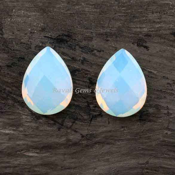 Beautiful Fiery Opalite Pear Shape 12x16mm Faceted Briolette Gemstone For Jewelry, Calibrated Loose Beads Stone For Earring Making 2 Pcs Set