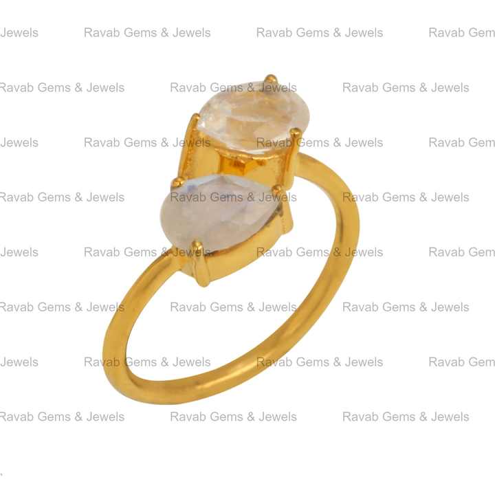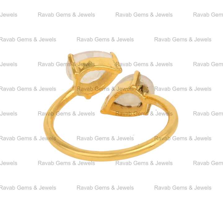 Top Selling Natural 6x4mm Pear Rainbow Moonstone Jewelry 18k Gold Plated Silver Dainty Teardrop Adjustable Prong Ring For Women