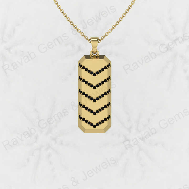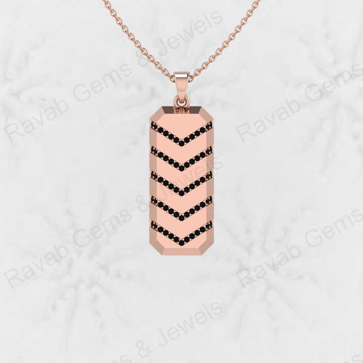 Best Quality Solid 925 Sterling Silver Black Cubic Zirconia Brilliant Cut Bar-Shaped Funky Pendant For Boys Necklace Jewelry
