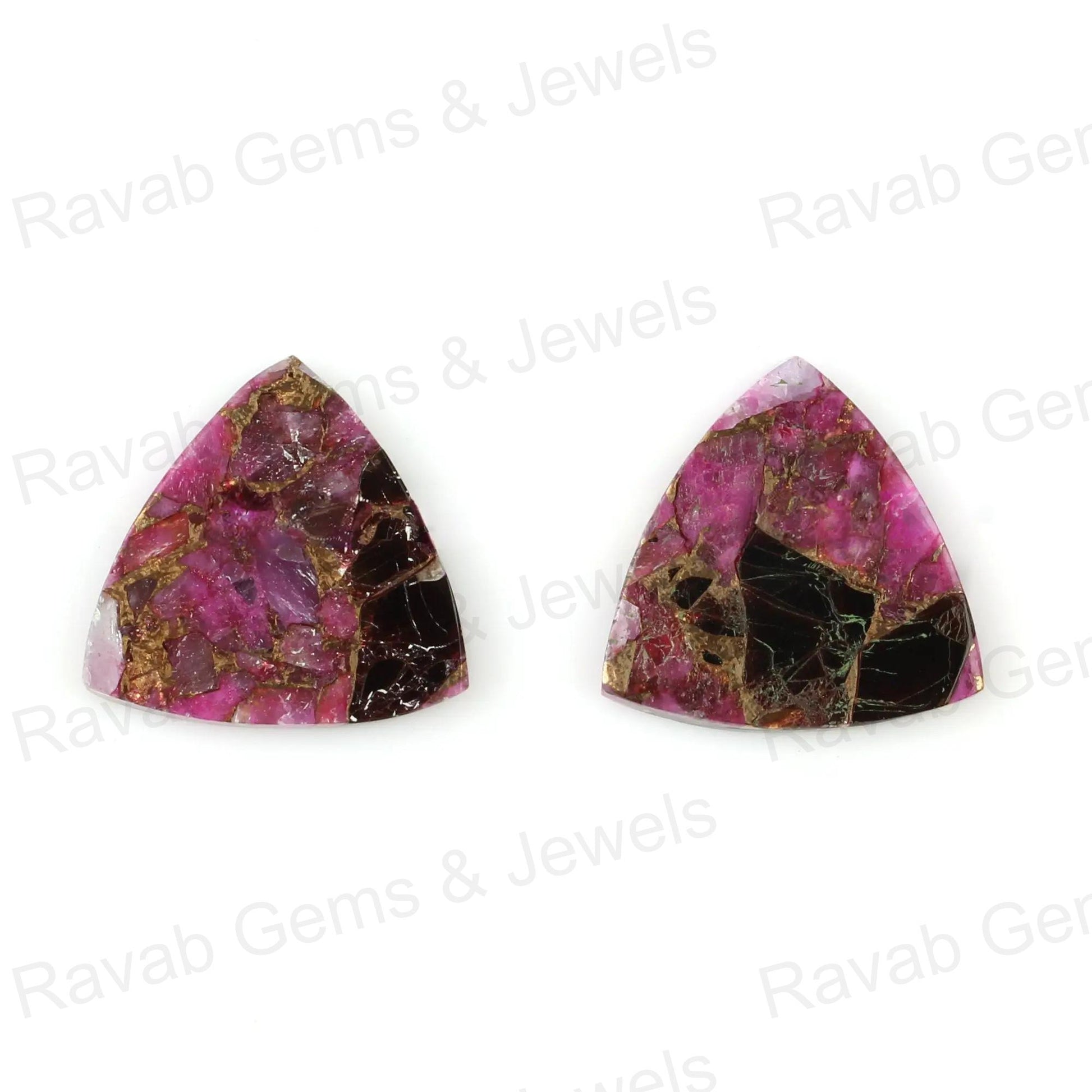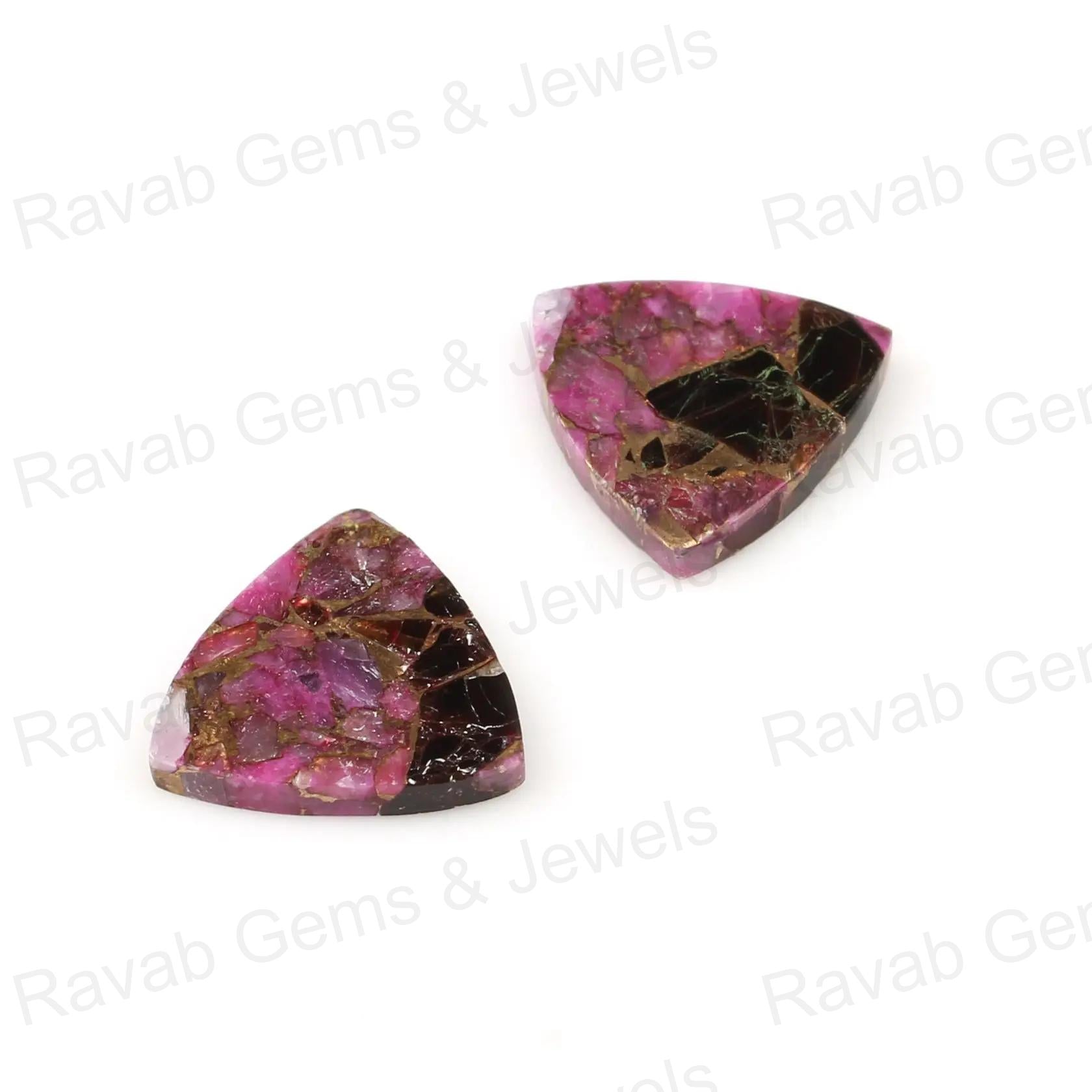 Black & Pink Copper Turquoise 12mm Trillion Shape Flat Gemstone, Calibrated Loose Beads Semi Precious Stone For Jewelry Making - 2 Pcs Set