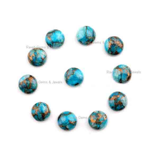 Blue Copper Turquoise Round Shape Cabochon Gemstone for Jewelry Making, Smooth Calibrated Stone For Jewelry Making For Gifted 2 Pcs Set