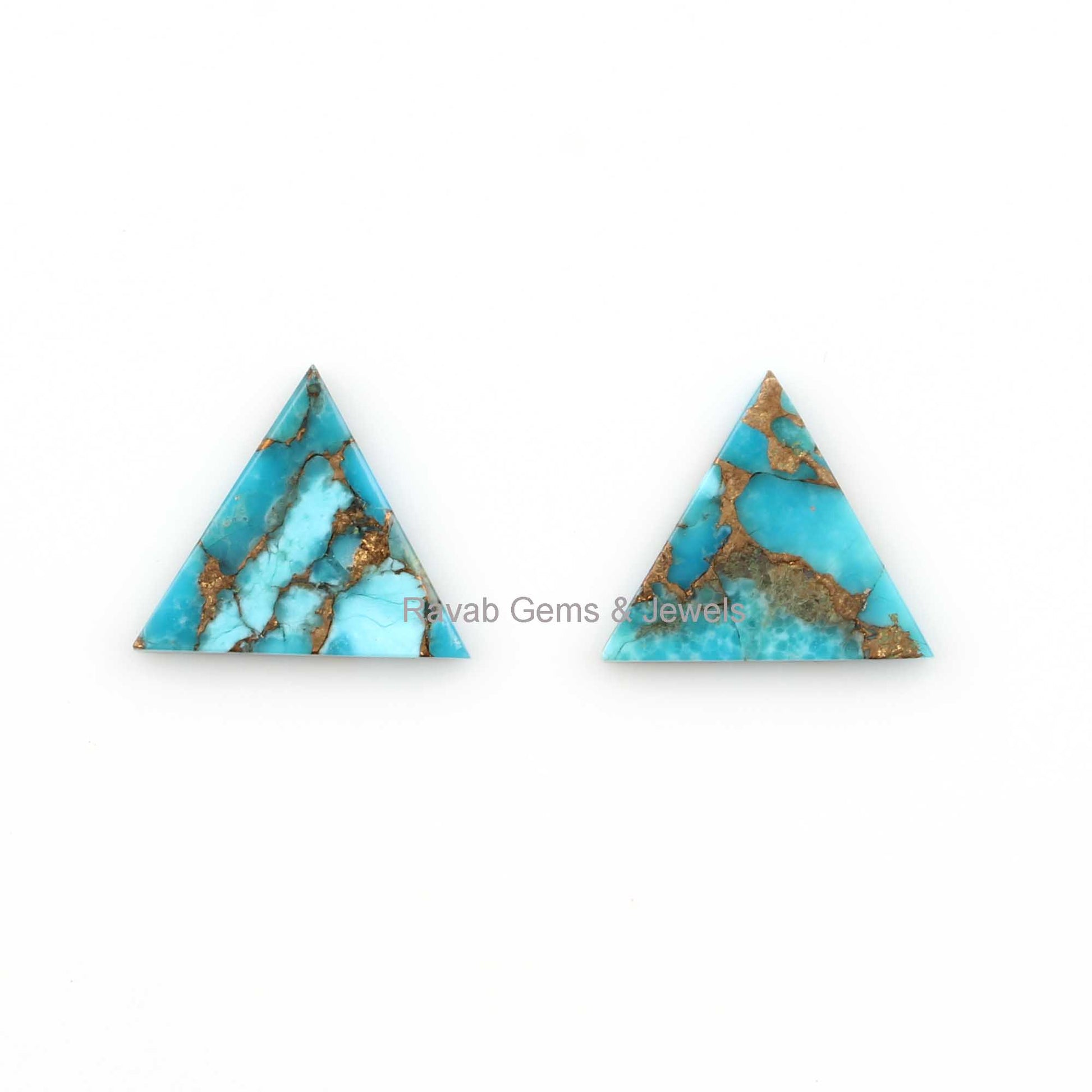 Blue Copper Turquoise Triangle Shape 12mm Smooth Flat Gemstone, Loose Beads Calibrated Semi Precious Stone For Jewelry 2 Pcs Set All Sizes