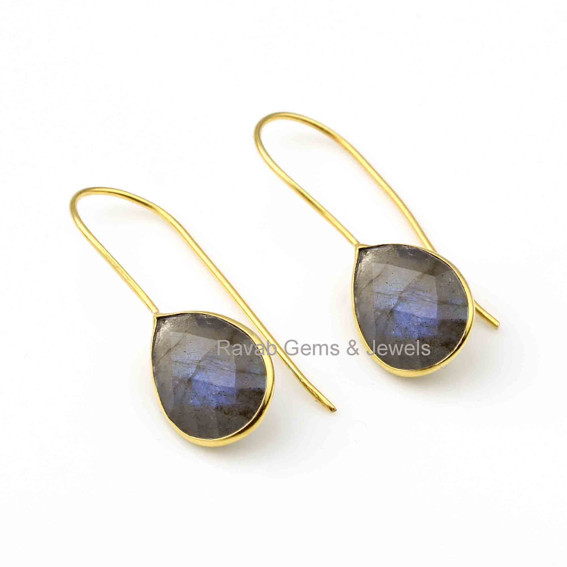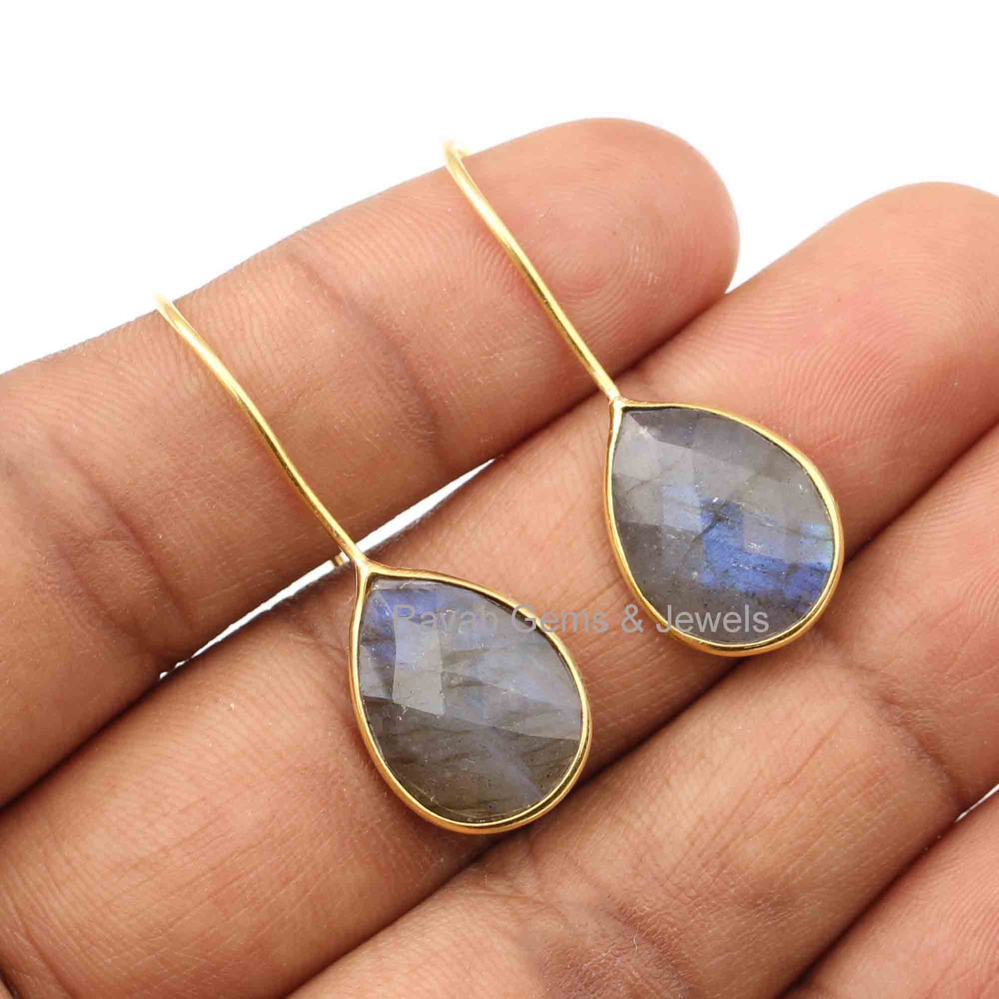 Blue Fire Labradorite Faceted Pear Dangle Gemstone, 12x16mm 925 Sterling Silver Gold Plated Earrings, Engagement Jewelry Earring Gifted