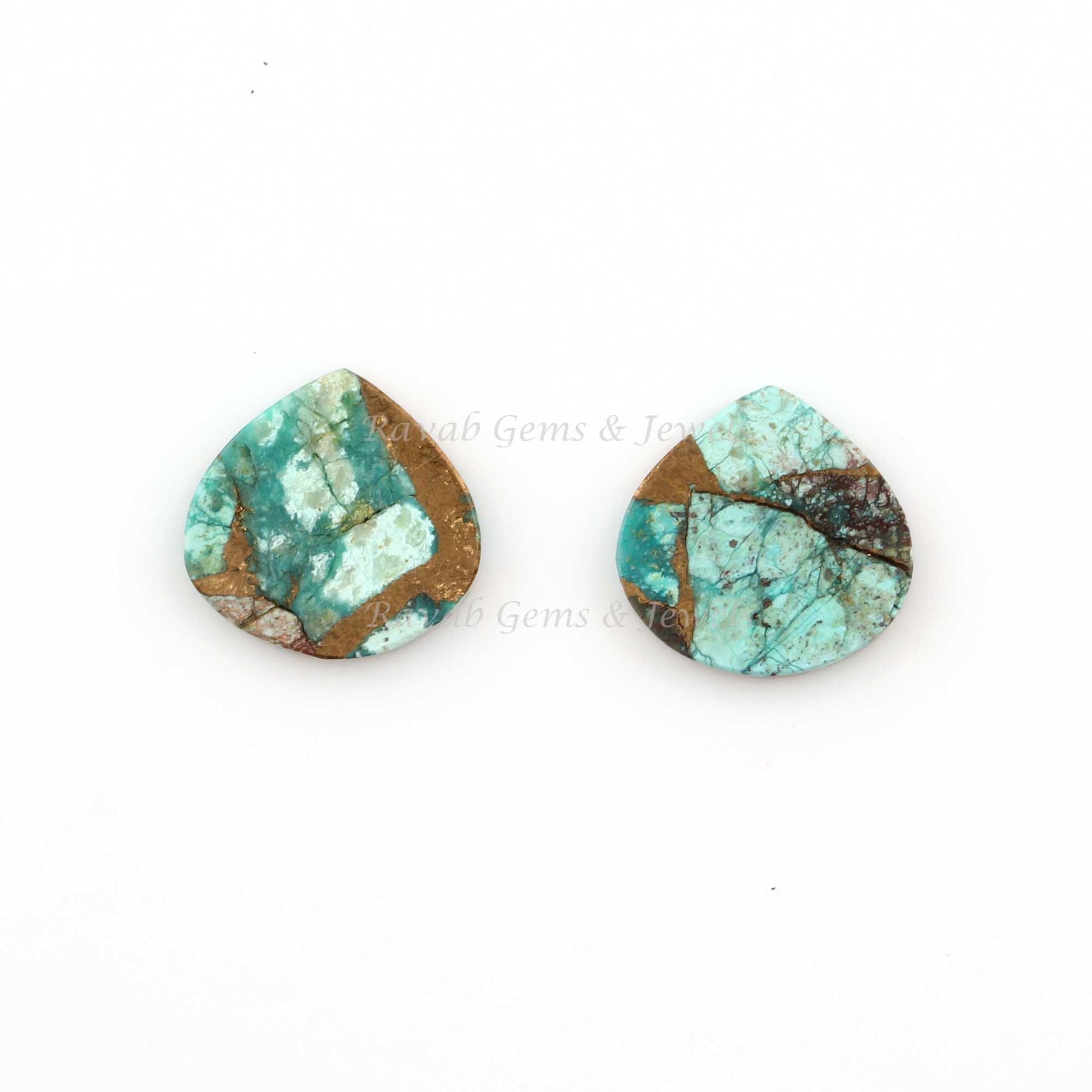 Chrysocolla Copper 12mm Heart Shape Flat Gemstone, Loose Gemstone Flat Jewelry Making, Earring Pendant Matching Pair - 2 Pcs Set