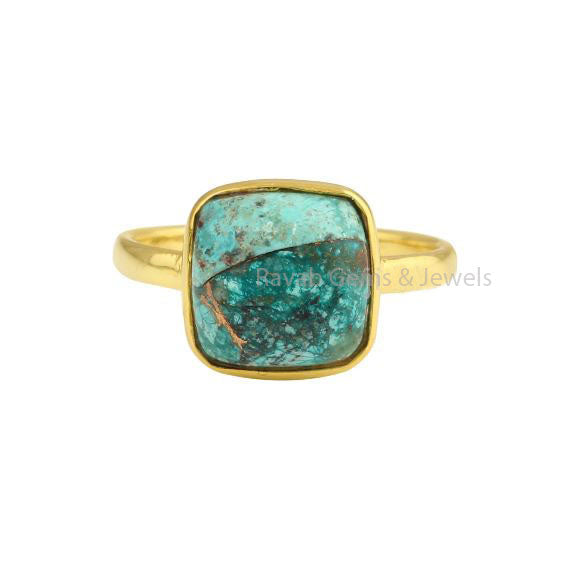 Chrysocolla Copper Cushion Silver Ring, Gold Plated Ring, 12mm Cushion Shape Chrysocolla Copper Gemstone Ring, Engagement Ring For Her
