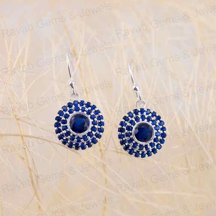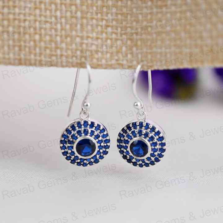 Hot Selling Beautiful 925 Silver 13mm Pave CZ Coin Disc Blue Sapphire Quartz Earrings Dangle Drop Women Earring Fine Jewelry
