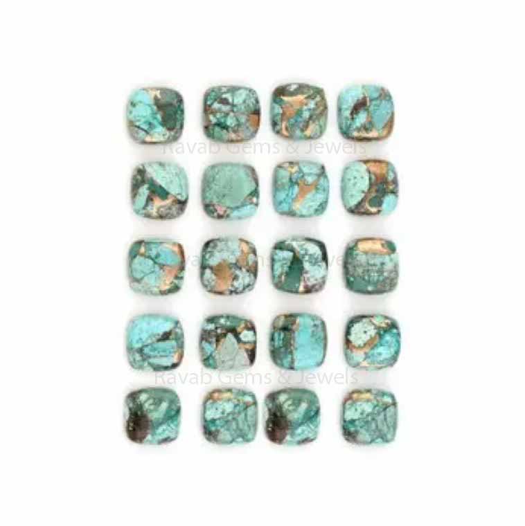 Copper Chrysocolla Cushion Shape Smooth Cabochons Gemstone | Loose Beads Calibrated Stone For Jewelry Making 5 Pcs Set 6mm-18mm