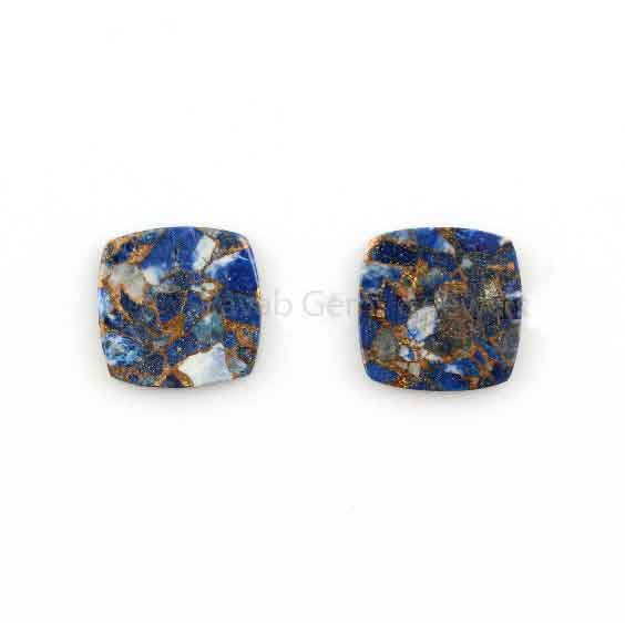 Copper Lapis Lazuli Cushion Flat Gemstone For Jewelry Making | Calibrated Loose Beads Stone For Jewelry 2 Pcs 12mm And All Sizes Available